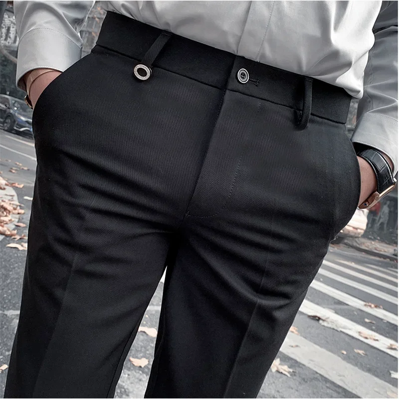 Men's Suit Pants Formal Pants New Stretch Slim Solid Color Straight Dress Pants Fashion Boutique Men's Clothing Ankle Trouser