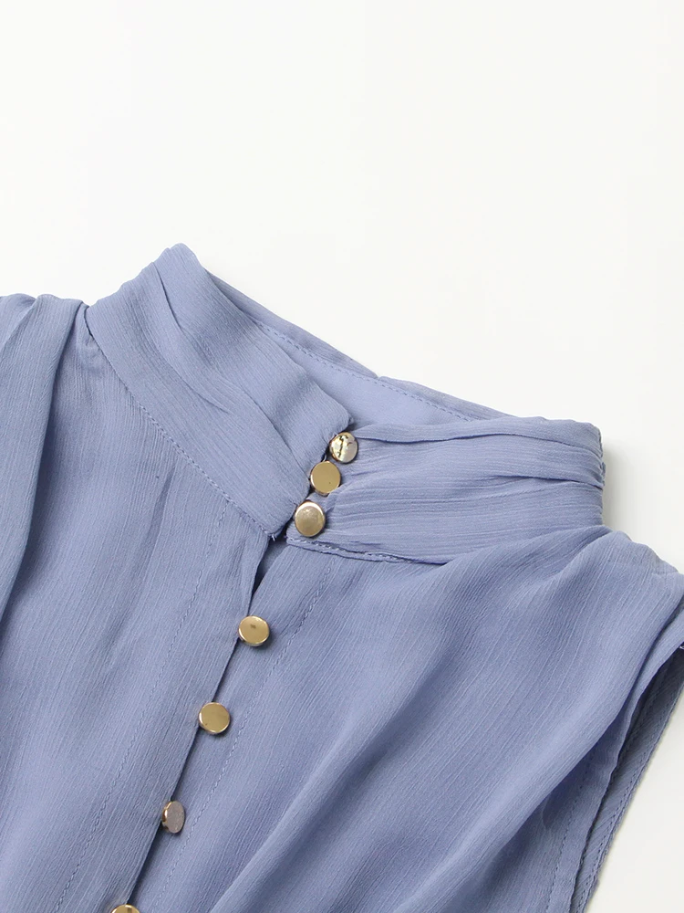 TWOTWINSTYLE Summer Tank Dress For Women Stand Collar Sleeveless High Waist Solid Midi Dresses Female Fashion Clothing Style New