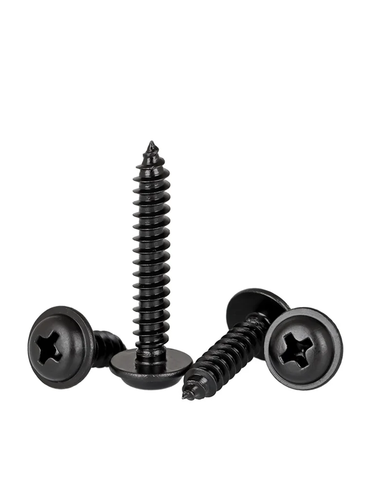 Черная углеродистая сталь PWA M1.2 M1.4 M1.7 M2 M2.3 M2.6 M3 M4 Саморез с крестообразным шлицем Philips и круглой головкой с шайбой DIN968
