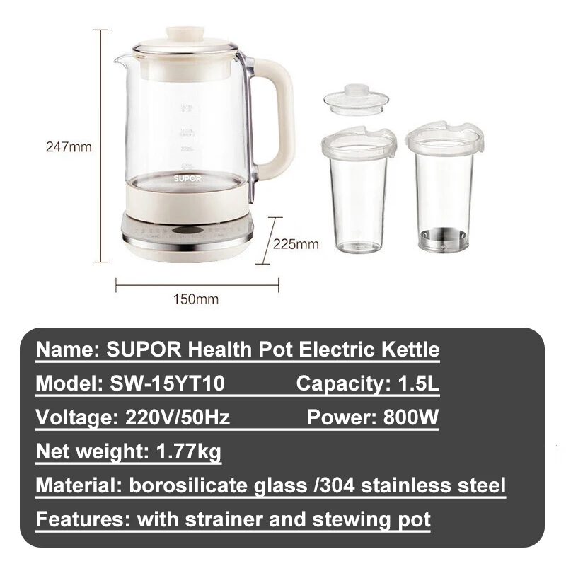 SUPOR domowy czajnik elektryczny 1,5 l garnek zdrowotny z kubkiem do gulaszu i filtrem uniwersalny czajnik wysokiej jakości urządzenia kuchenne