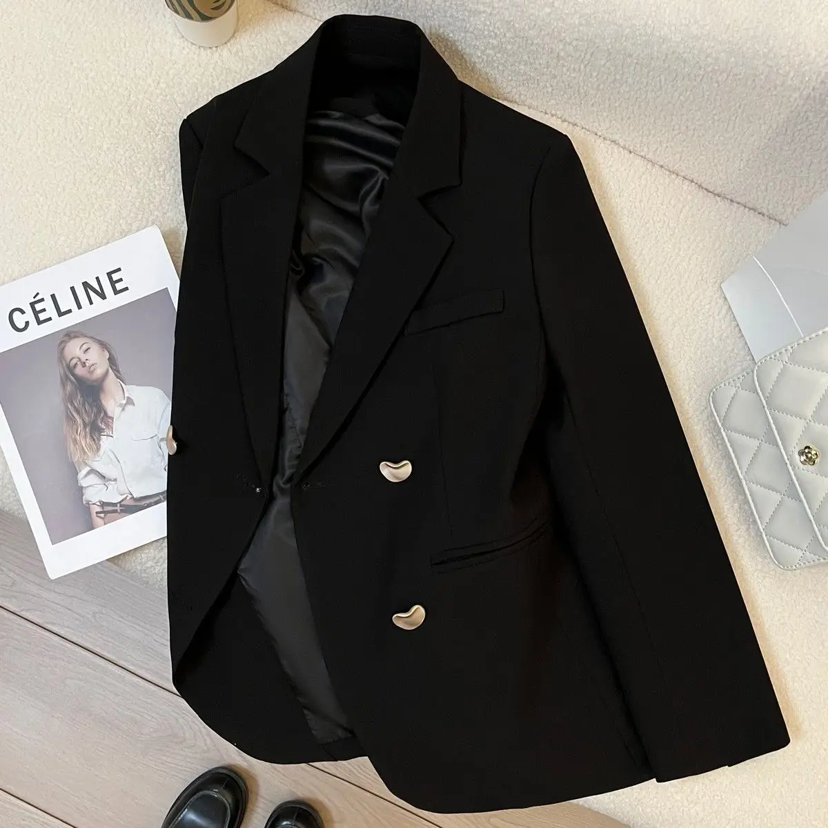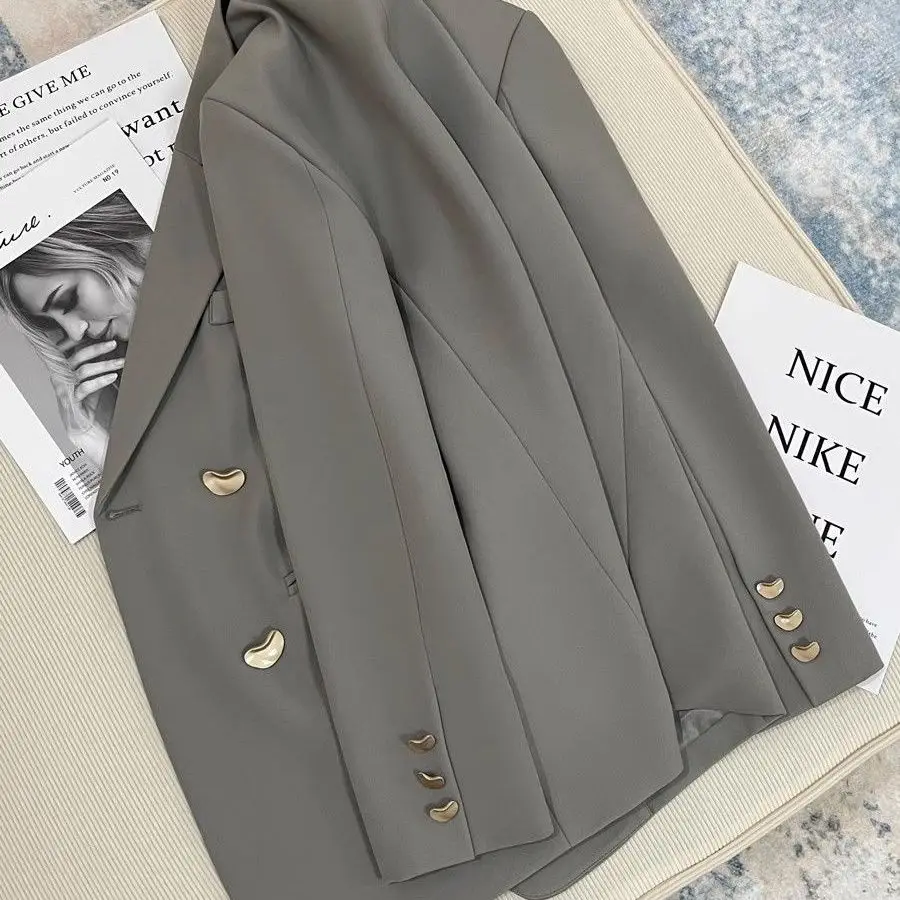 2024 Spring And Autumn New Versatile Fashion Gray Suit Women's Loose Fashion Mid Length Flip Collar Coat