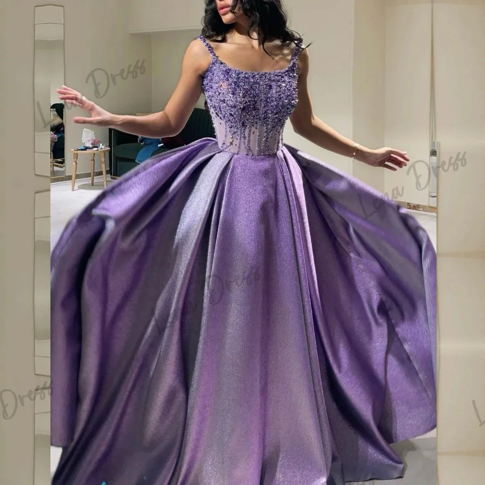 Lena-2024 Square neckline thin shoulder strap ball dress pearl sequin formal evening dress occasion dress Robe De Soiree