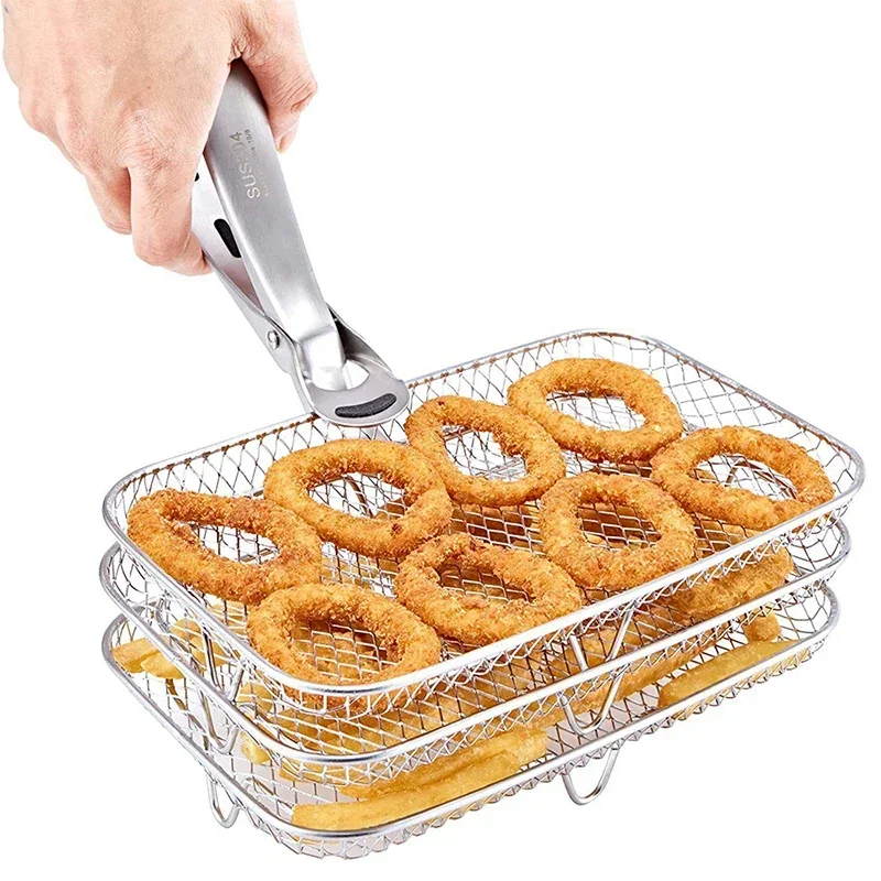 Stojak na frytownicę 3-warstwowa siatka do układania w stos Antykorozyjne gadżety gospodarstwa domowego do domowego pieczenia na świeżym powietrzu
