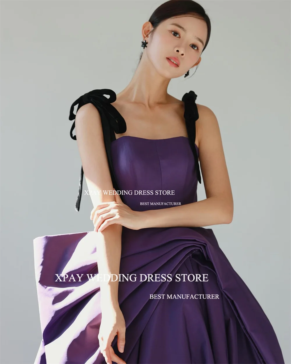 Xpay quadratischen Hals lila Korea Abendkleider schwarze Träger Satin Abendkleid Fotoshooting Korsett ärmelloses Geburtstags feier kleid