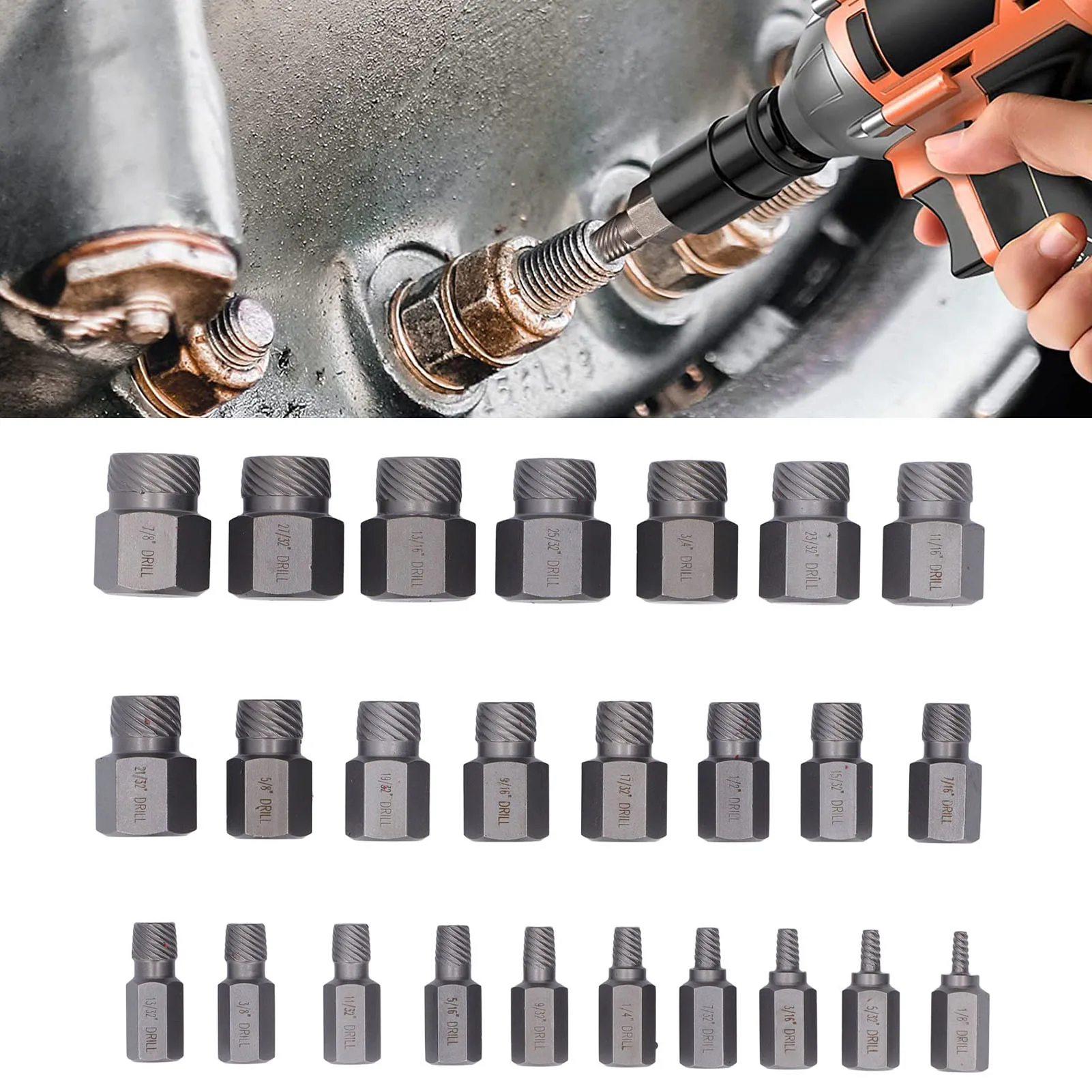 25PCS Damaged Screw Extractor Kit Chrome Molybdenum Steel Hex Bolt Stud Extractor for Removing