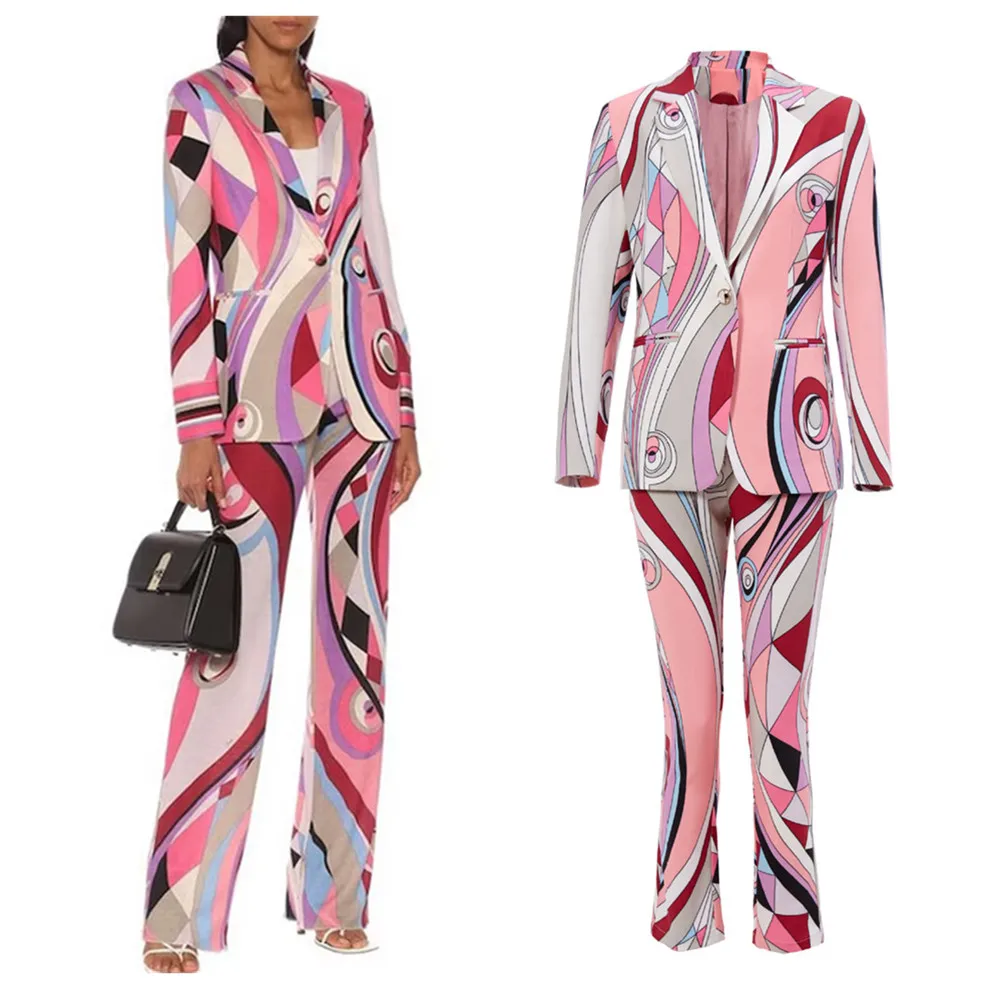 Wysokiej jakości designerskie stroje dla kobiet z długim rękawem i różowa marynarka i spodnie na co dzień elegancka luksusowa moda 20