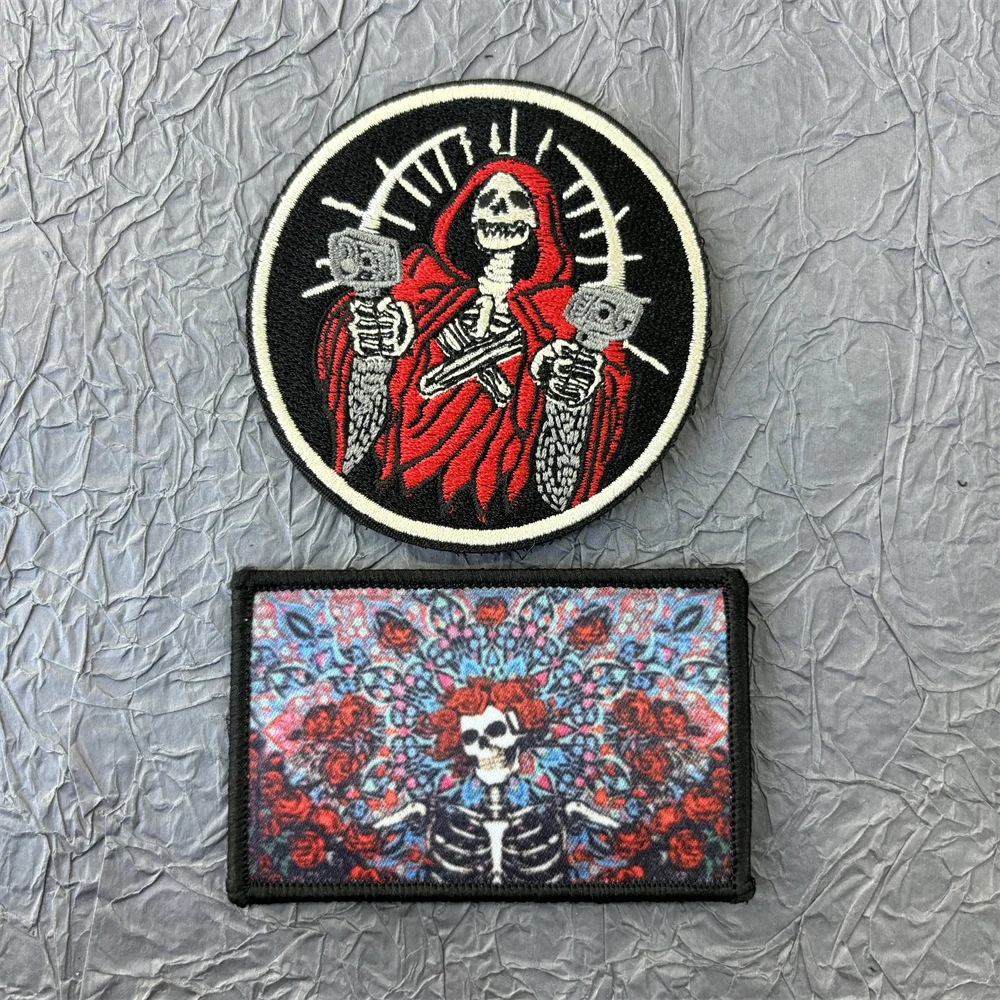 Haftowana naszywka z czaszką na ubrania wdzięczny szkielet róże naklejki z nadrukiem naszywki na rzepy taktyczny plecak wojskowy