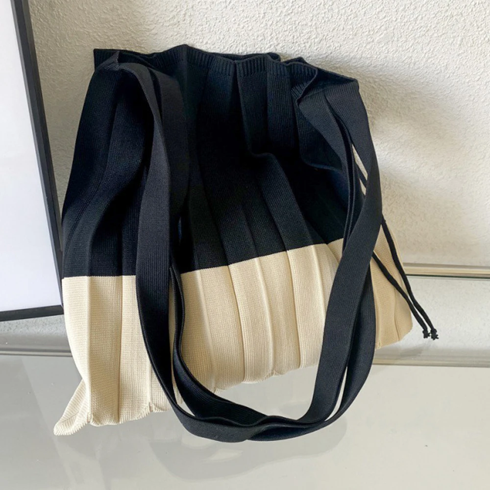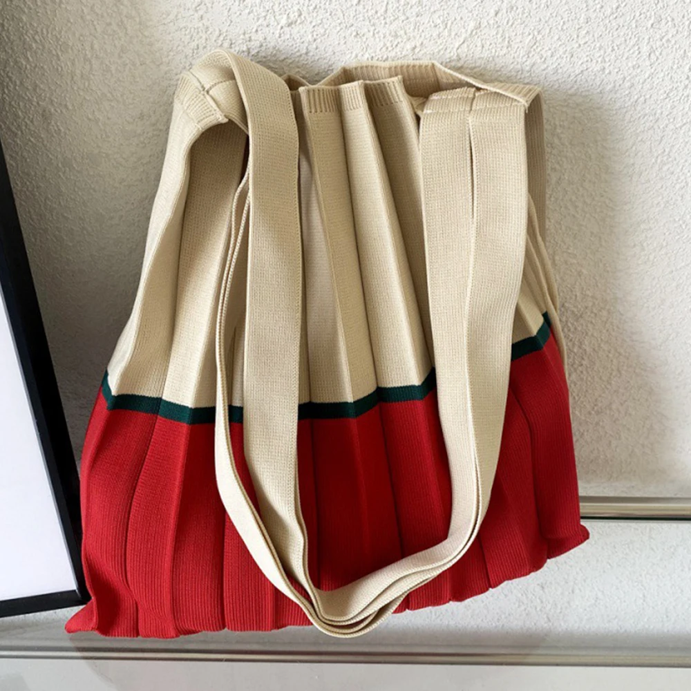 Knitted Foldable Storage Handbag Casual Large Capacity Reusable Eco Folding Shopping Tote Bags For Women Organ Pleats