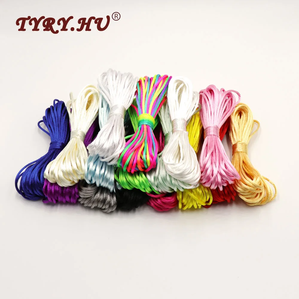 TYRY.HU MultiColor 10meter Satin Nylon Cord Solid Rope For Jewelry Making Beading Cotton Cord For Baby 2mm Braided Silk Cord