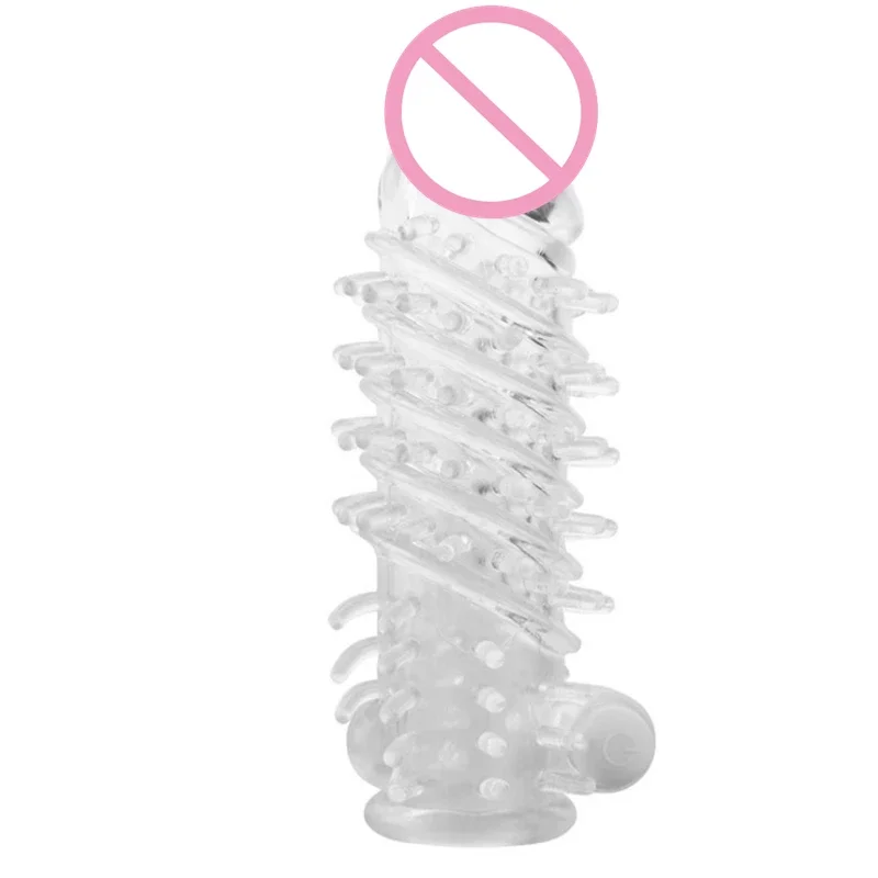 Vibrator Penis Sleeve Reusable Condom Delay Long Sleeve Crystal Spike Dildos Vibrating Penis Sleeves Sex Toys for Men